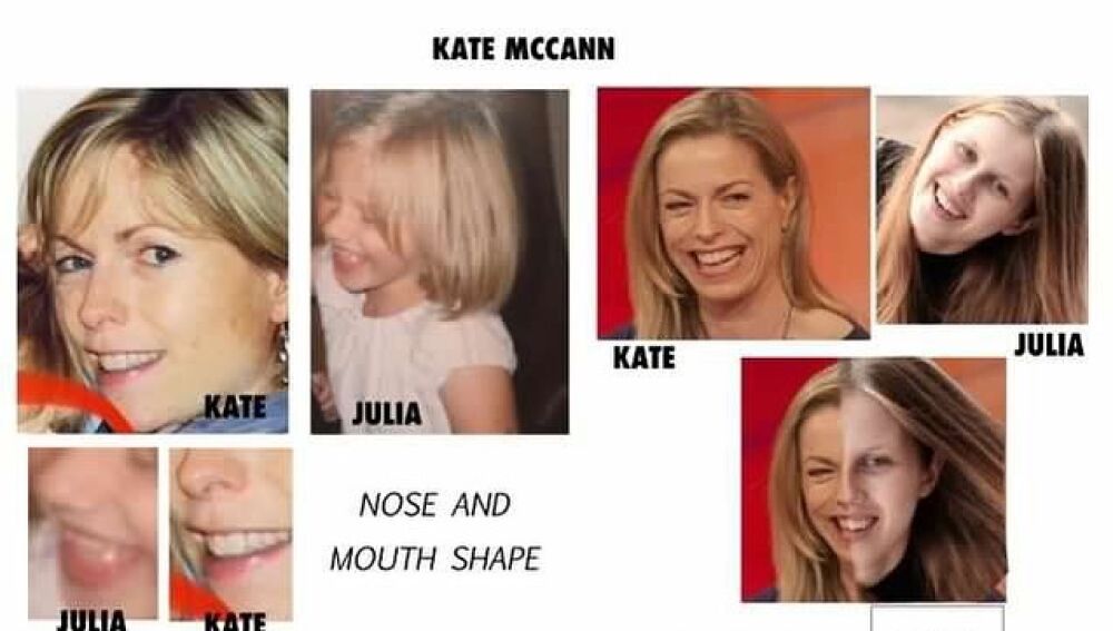 Concretamente, se trata de fotografías en las que los tres aparecen sonriendo, recortando las sonrisas y de Kate y Gerry y poniéndolas al lado de la suya para evidenciar, a mayor escala, el supuesto parecido físico. De la misma manera, ha comparado las miradas.