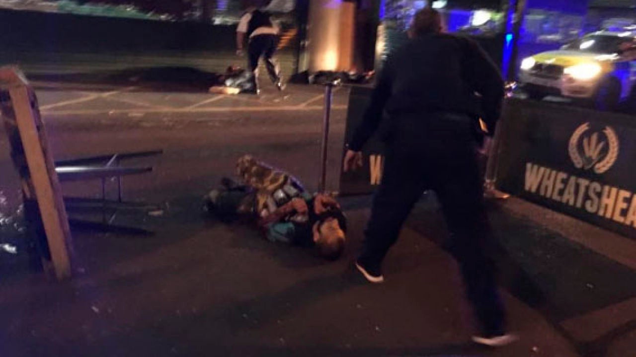 Una imagen difundida por BBC y Telegraph y captada por el fotógrafo Gabriele Sciotto muestra el cuerpo de un supuesto atacante tumbado en el suelo y también se vería a otra persona tumbada más atrás. Sin embargo, después se ha confirmado que el hombre no tenía explosivos adosados a su cuerpo.