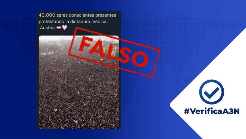 Se está difundiendo una imagen de una supuesta protesta tras el anuncio de las nuevas restricciones en Austria para frenar la nueva ola del coronavirus. El país está en el ojo del huracán y se están viralizando imágenes sacadas de contexto, fechada años atrás y que nada tienen que ver con la pandemia del coronavirus.