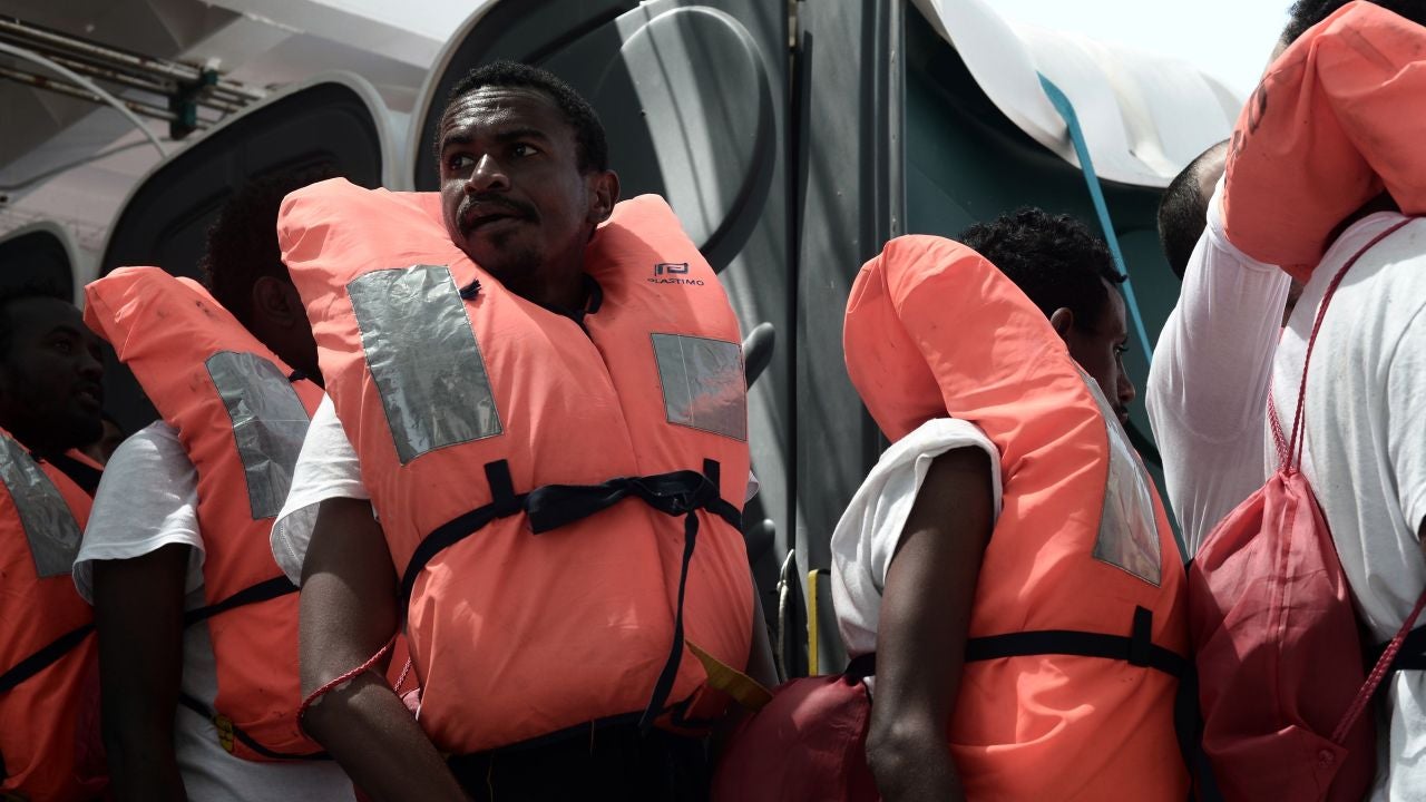 El patrullero de altura de la Armada española Vigía acompaña desde esta madrugada a la flotilla de tres buques que trasladan a 629 migrantes hacia el puerto de Valencia, tras haber sido rescatados esta semana frente a las costas de Libia y rechazados por los puertos de Italia y Malta.