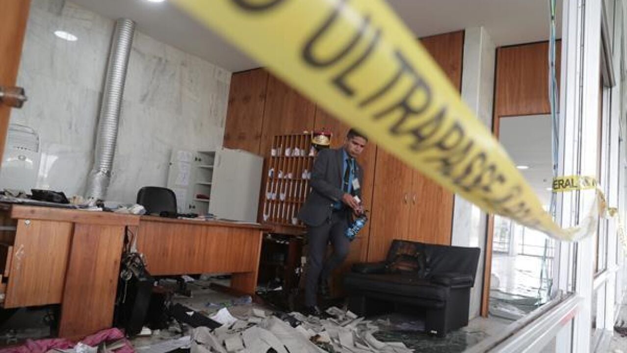 "Cada uno de esos maletines tiene armas, armas letales y armas no letales que se han llevado", ha denunciado Pimenta en un vídeo publicado en sus redes sociales. Asegura que los asaltantes, a quienes califica de "criminales", intentaron prender fuego a una de las salas e indica que se trata de un "crimen más cometido por los enemigos de la democracia".