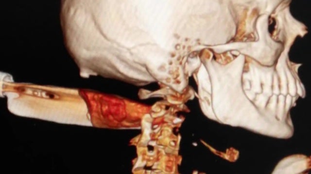 Mediante una radiografía, el equipo médico del hospital comprobó que el cuchillo había perforado la médula espinal, lo que dificultaba la administración de anestesia. A pesar de todo, el doctos Prasanna Kumar decidió seguir adelante.