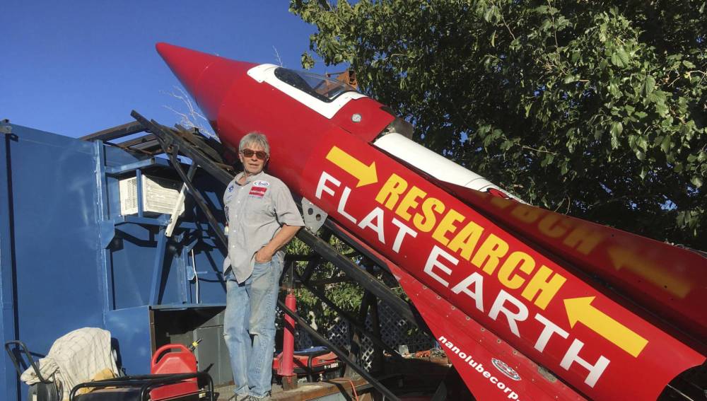 Rechaza la creencia general de que la Tierra es redonda, y su vuelo está patrocinado en gran parte por un grupo llamado Research Flat Earth, que celebraron el pasado 9 y 10 de noviembre su primer congreso.