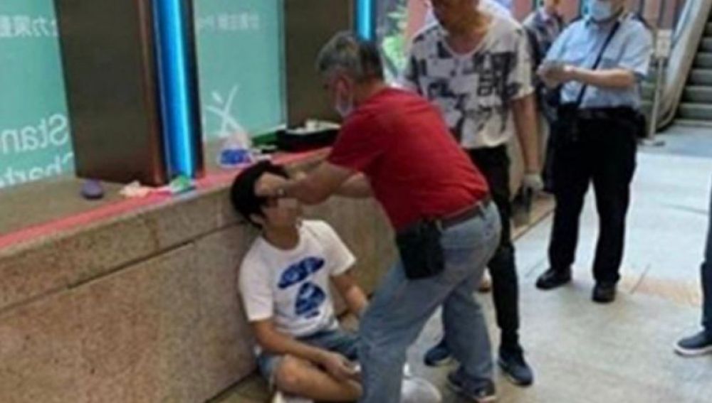 Una de las fotos de la golpiza se convirtió en viral en las redes sociales de Hong Kong.