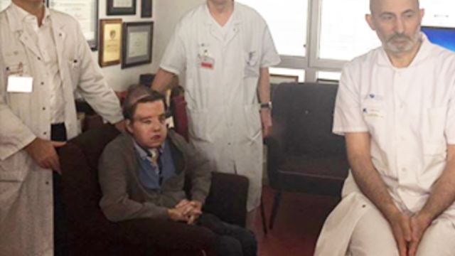 Jérôme Hamon, de 43 años, padece neurofibromatosis-1 o 'enfermedad Von Recklinghausen', un mal genético que le provocó la deformación del rostro. Se ha convertido en el primer paciente en el mundo en someterse a dos trasplantes de cara al superar una segunda operación en el hospital Georges-Pompidou de París.