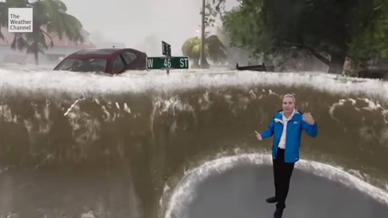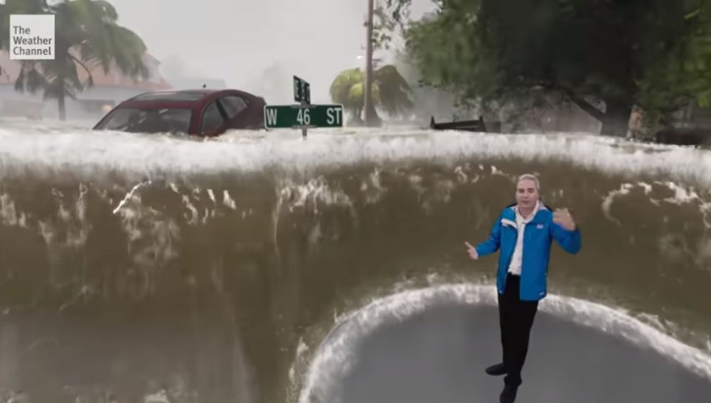 Weather Channel, utilizando recursos 3D y realidad aumentada, ha mostrado calles inundadas y coches arrastrados para explicar cómo se vería una ciudad ante estas circunstancias.