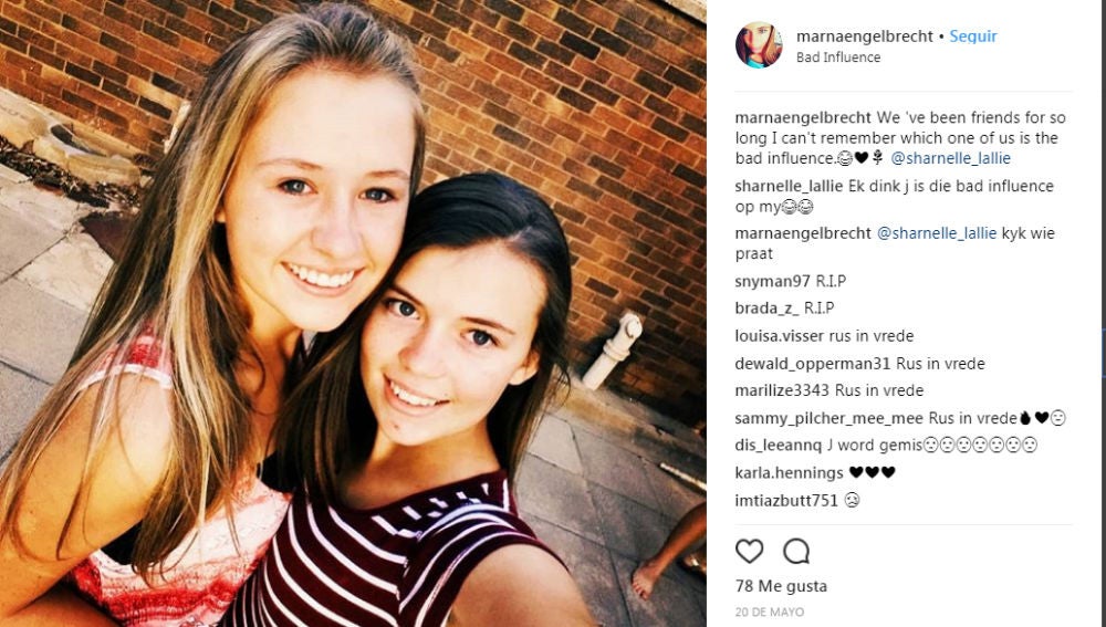 Xander Bylsma de 19 años ha sido acusado de asesinar a su expareja Sharnelle Hough de 17 años y a la mejor amiga de esta Marna Engelbrecht de 16 años. Los hechos ocurrieron el pasado 27 de mayo en Sudáfrica.