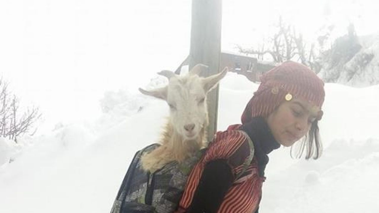 La joven estaba con el rebaño de cabras en una colina nevada cuando uno de los animales se puso de parto. En ese momento decidió conducir al rebaño hasta el refugio y coger dos mochilas para poder llevar a la madre y a la cría de vuelta a casa sin que sufrieran ningún tipo de problema.
