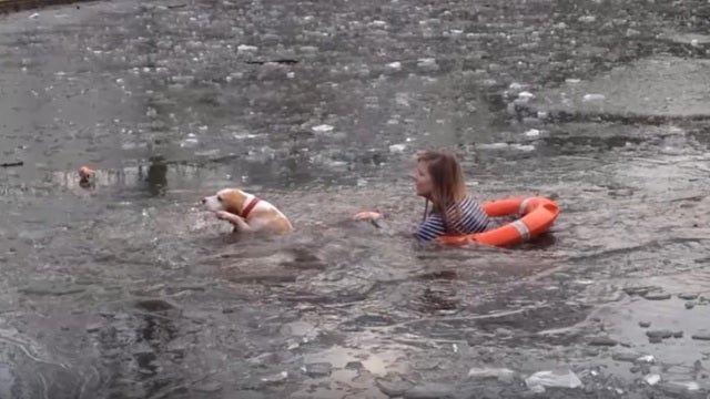 Una joven británica no dudó en lanzarse a un lado helado de Londres para salvar a su perro, que se había quedado atrapado ante la dificultad de salir del mismo.