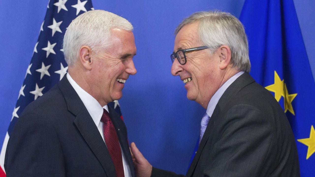 El presidente de la Comisión Europea (CE),"Abordaremos asuntos que a veces pueden dar la impresión de crear divergencias. No creo que sea momento de dividir a la UE y EEUU. Somos socios desde hace tantas décadas en el mundo, la estabilidad global depende fuertemente de las buenas relaciones entre EEUU y la UE", indicó Juncker ante la prensa junto a Pence antes de iniciar una reunión bilateral.