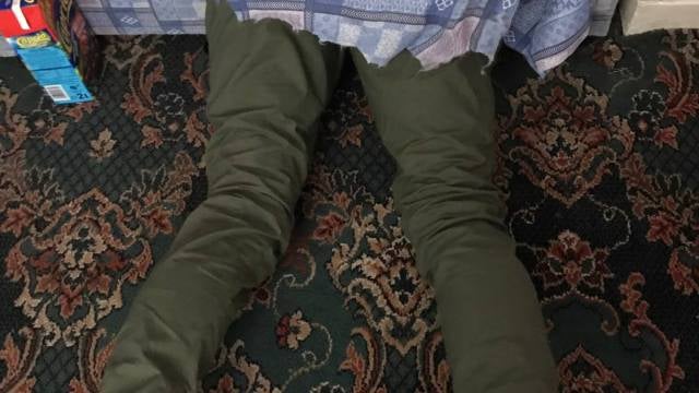 La Policía de West Yorkshire difundió la curiosa estampa que se encontró cuando entró en una vivienda a buscar a un hombre que tendría que haber acudido a los juzgados a pagar una multa. "No va a ganar ningún premio jugando al escondite", escribieron los agentes junto a la surrealista fotografía.