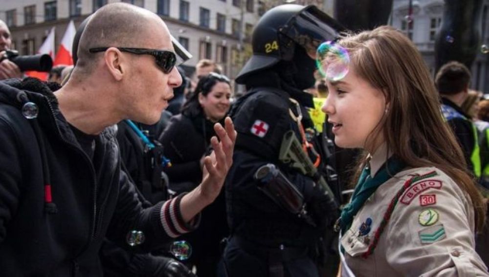 Lucie Myslíkova, una niña de 16 años, no ha dejado de recibir elogios después de enfrentarse a un neonazi en una concentración de ultraderecha en Brno (República Checa).