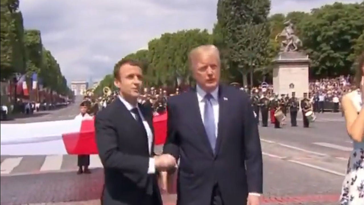 Al concluir los actos por la Fiesta Nacional de Francia, el presidente francés y el presidente de EEUU se volvieron a retar con un vigoroso apretón de manos.