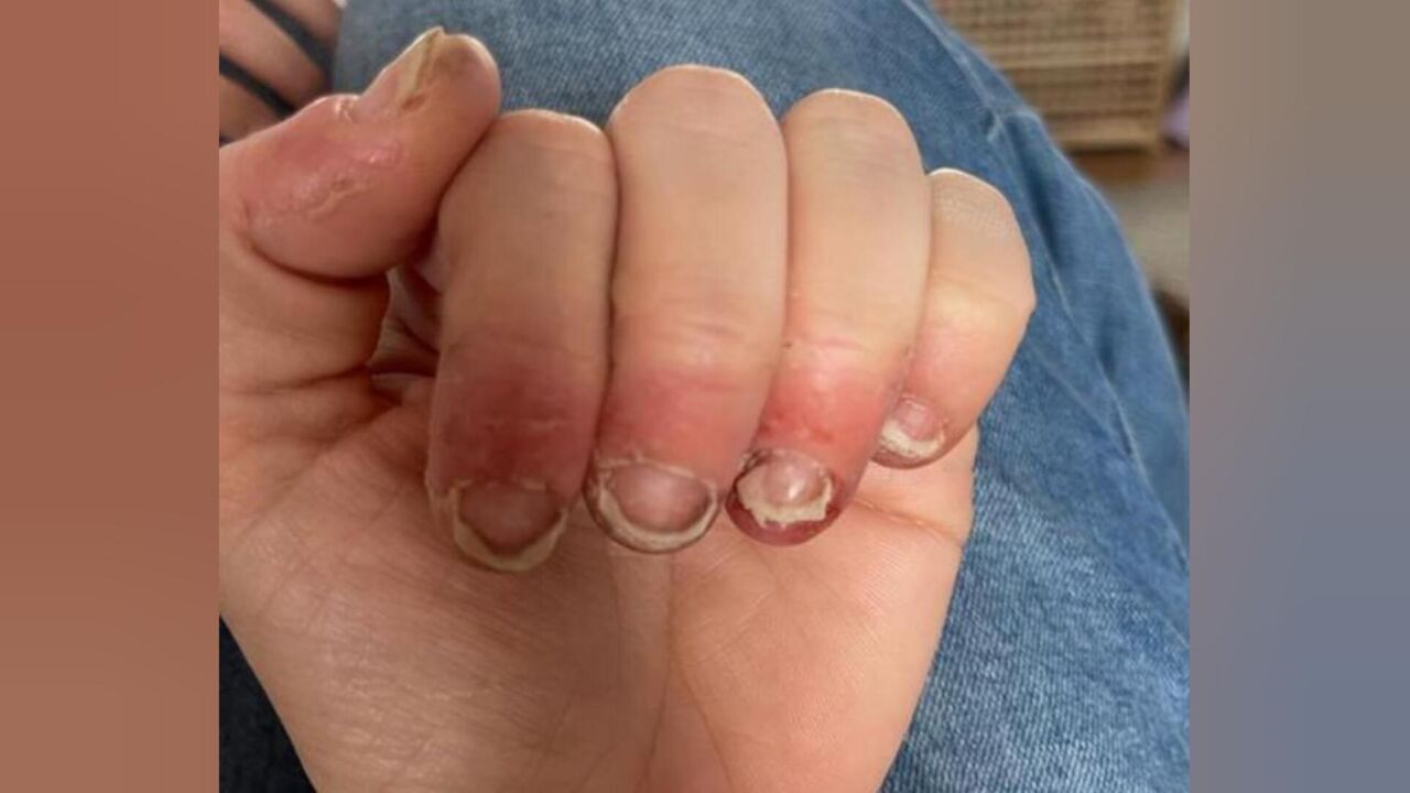 Lisa Dewey tiene 36 años y denuncia que tras realizarse una manicura comenzó a sentir dolores fuertes y las uñas se le empezaron a caer.
