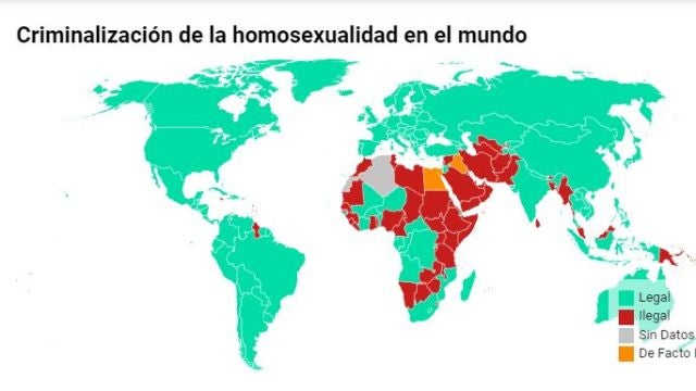 En el mundo hay 123 países en los que los actos sexuales consensuales entre personas adultas del mismo sexo no están penados, aunque los niveles de protección varían de unos a otros. Sin embargo, en otros 70 estados, ser homosexual o bisexual está castigado por la legislación, incluso con pena de muerte, según la Asociación Internacional de Lesbianas, Gais, Bisexuales, Transexuales e Intersexuales (ILGA).