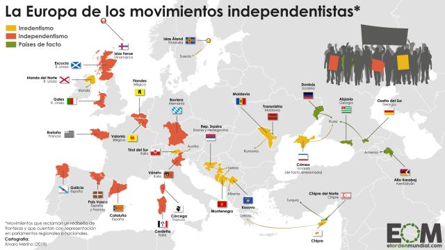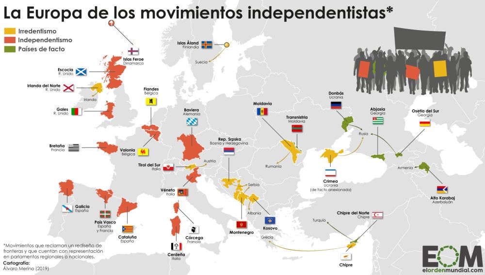 El medio 'El Orden Mundial' ha elaborado un exhaustivo mapa que refleja todos los movimientos independentistas activos en el Viejo Continente.