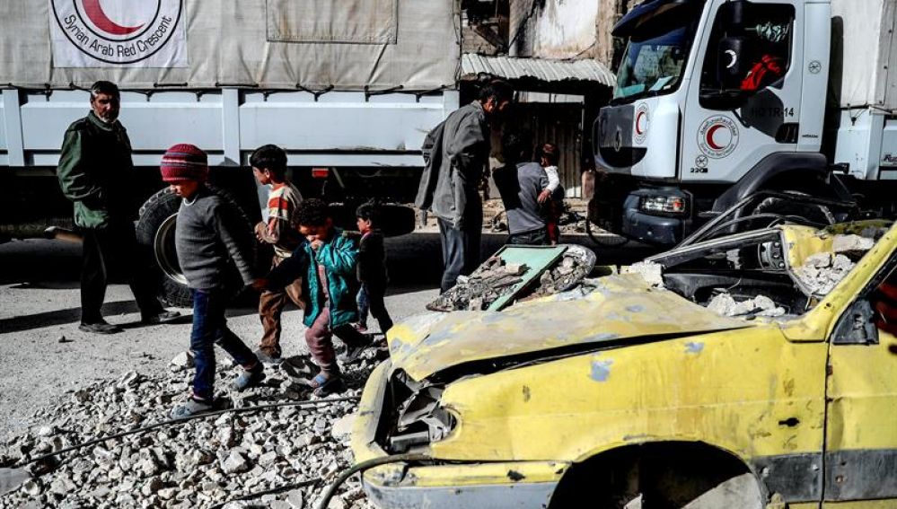 Un convoy de la ONU y el Comité Internacional de Cruz Roja (CICR) logró entrar el lunes en Guta, pero lo hizo con menos material del deseado y entre riesgos de seguridad. Catorce de los 46 camiones fletados no pudieron descargar la ayuda que se había preparado debido a los combates.