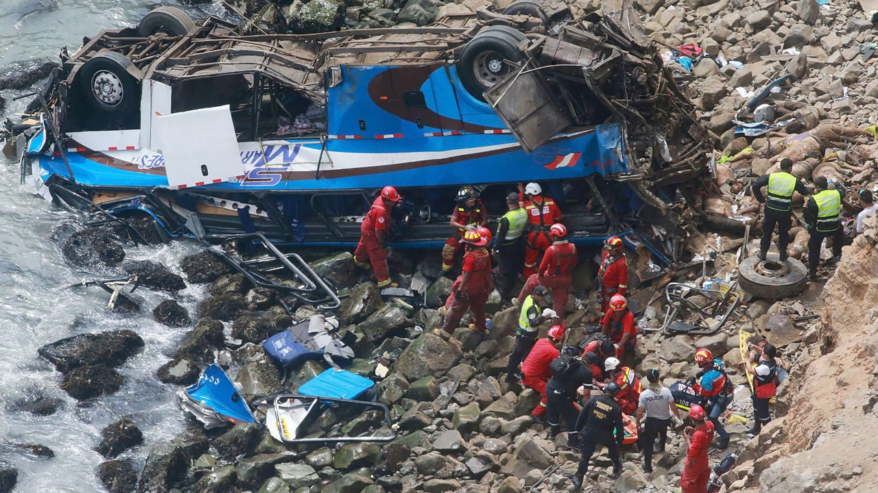El accidente se produjo en la carretera Panamericana Norte, a unos 45 kilómetros de Lima, en una zona conocida como "La curva del diablo", que recorre un acantilado sobre el océano Pacífico. Cuadrillas de bomberos voluntarios, de la Policía Nacional, de la Marina de Guerra y del Ministerio de Salud participan en las operaciones de rescate de las víctimas.