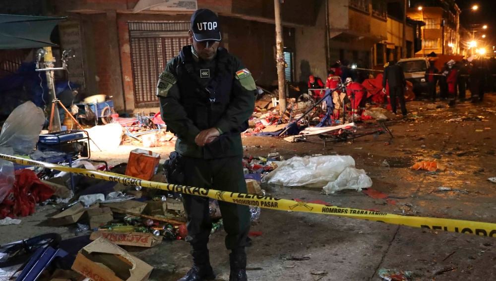 El comandante de la Policía boliviana en el departamento de Oruro (oeste), Romer Raña, declaró a los medios en el lugar del suceso que la hipótesis de la investigación preliminar es que se trató de un "accidente". "Producto del derrame del aceite de sartén que manejaba una vendedora de comida se ocasiona un sobrecalentamiento de una manguera que conectaba la garrafa", explicó. "Eso a su vez origina una fuga de gas que da lugar a una explosión de la garrafa", relató el comandante, quien indicó que la onda expansiva afectó a un radio de unos cincuenta metros.