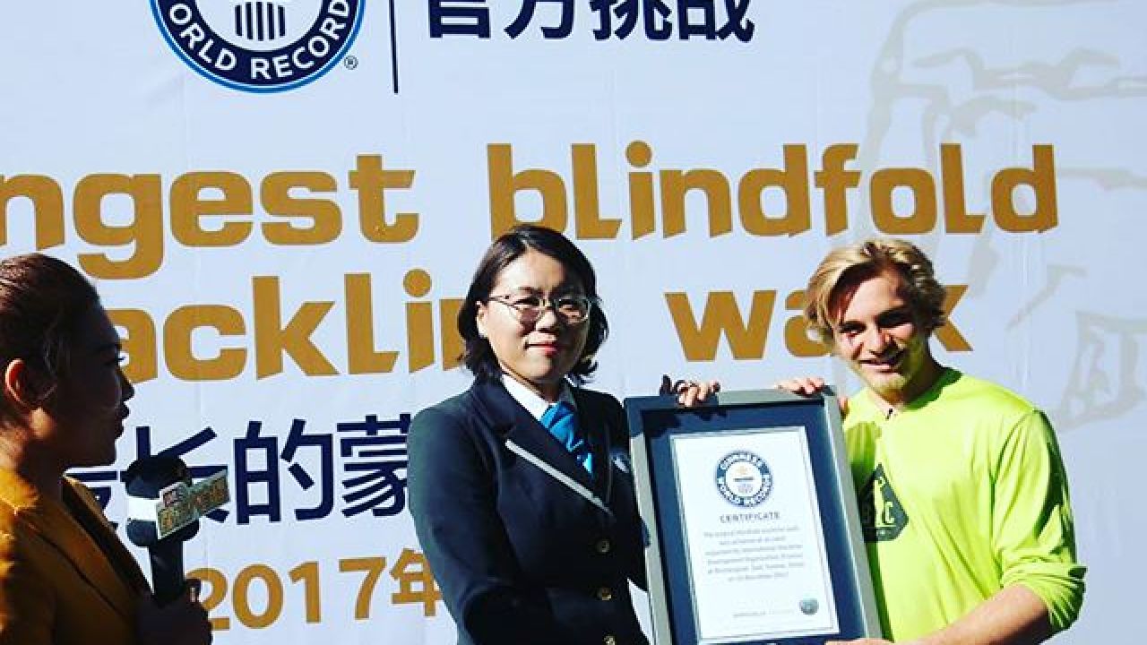 Pablo Signoret ha conseguido el nuevo récord Guinnes de funambulismo en Yunnan, China. Sobre una cuerda de más de 400 metros de largo extendidas sobre el valle de Shimenguan, a miles de metros de altura y a ciegas.