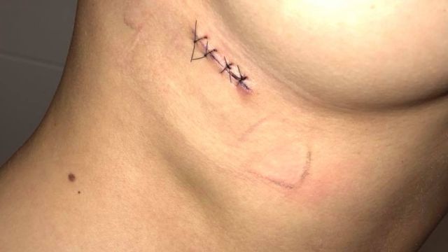 Ella Ravenscroft, una modelo de 26 años, ha contado en Facebook su propia experiencia después de que, debido al uso excesivo de máquinas de bronceado, le salieran varios lunares y tuvieran que extirpárselos por un melanoma. Uno de ellos le salió en la tripa, otro en la espalda y el otro bajo el pecho y advierte de que ante la presencia de un lunar en el cuerpo es "mejor prevenir que lamentar". "Si tus lunares pican o crecen, asegúrate de que te los revisen", explica en un post en Facebook.