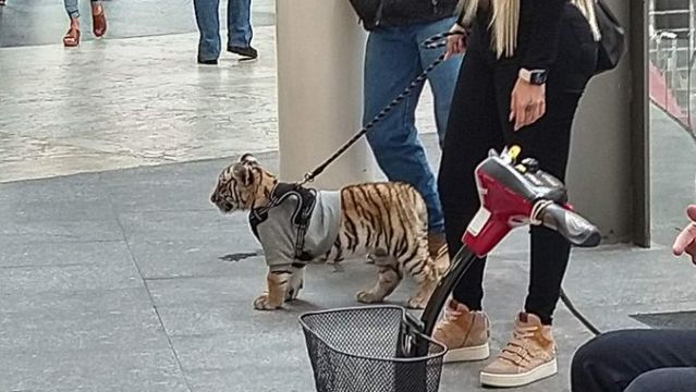 Las imágenes de una mujer paseando a un cachorro de tigre de bengala por los pasillos de un centro comercial en México han generado indignación entre los usuarios de las redes sociales.