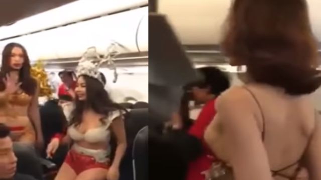 En las imágenes publicadas en las redes sociales se puede apreciar la sorpresa de los jugadores que viajaban a bordo del avión tras la aparición de las azafatas.