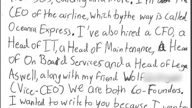El niño quiere fundar una a aerolínea. Para ello, no ha dudado en pedir consejo al CEO de la aerolínea Qantas. En su carta, el joven le pregunta cosas cómo qué tipo de aviones necesitará .