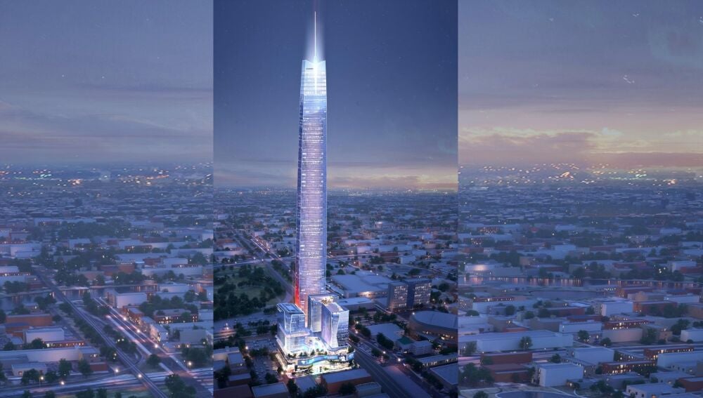 Uno de los edificios del innovador complejo 'The Boardwalk at Bicktown', que medirá 581 metros de alto y se encontrará en Oklahoma, será el rascacielos más grande de EEUU en unos años.