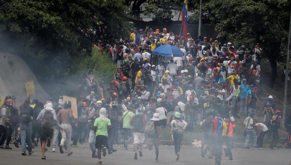 Las riñas entre agentes y manifestantes han extendido entonces por la zona de Bello Campo, donde los encontronazos han continuado durante toda la tarde de este sábado. El conocido 'violinista de las marchas', Wuilli Arteaga, ha sido herido en la cara por un perdigón presuntamente lanzado por la Guardia Nacional Bolivariana.