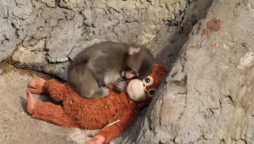 El pequeño macaco se hizo viral tras la difusión de un vídeo en redes sociales donde se aferraba a un peluche de orangután en el zoológico de Ichiwaka.