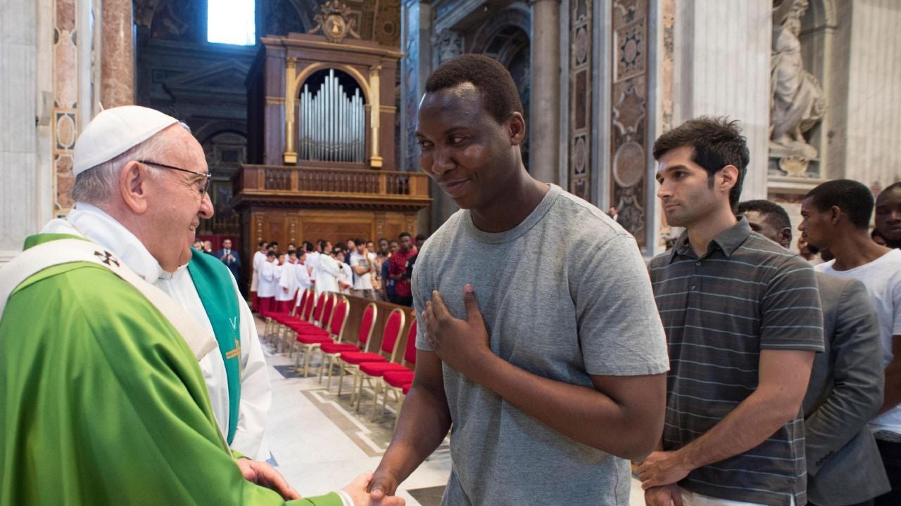 En los bancos de la basílica de San Pedro hoy se han sentado decenas de refugiados, entre ellos dos familias, una de Costa de Marfil y otra de Nigeria; dos jóvenes de Irak, una mujer somalí, una madre nigeriana con sus hijos y tres refugiados llegados de Mali, Nigeria y Camerún, como ha explicado la Fundación Astali, de los jesuitas, que se ocupa de acogida de inmigrantes. También ha asistido una representación de la ONG española Open Arms, entre ellos su fundador, Óscar Camps, que se dedica al salvamento de inmigrantes en el Mediterráneo Central.