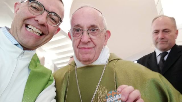 El cura, que gestiona una casa que acoge a refugiados, le enseño la chapa con el mensaje y le explicó el significado, según explicó Capovilla. Tras la foto, agregó el sacerdote, el Papa quiso quedarse con la chapa.