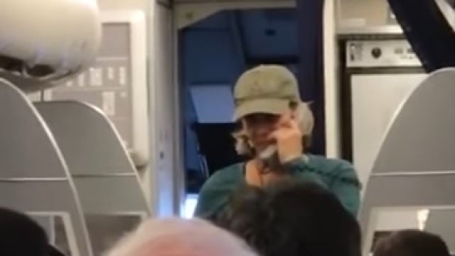 La mujer, que llegó tarde y con ropa de calle, comenzó a hablar mediante la megafonía del avión después de discutir con miembros de la tripulación. En primer lugar se disculpó por la tardanza alegando que se estaba separando y opinó sobre la situación política en Estados Unidos: "No me importa si votasteis por Trump o Clinton, los dos son estúpidos".