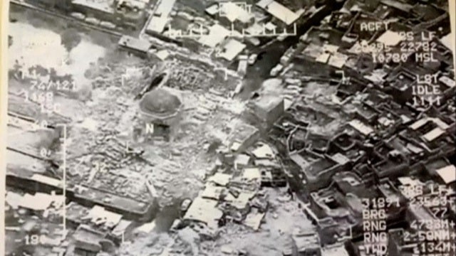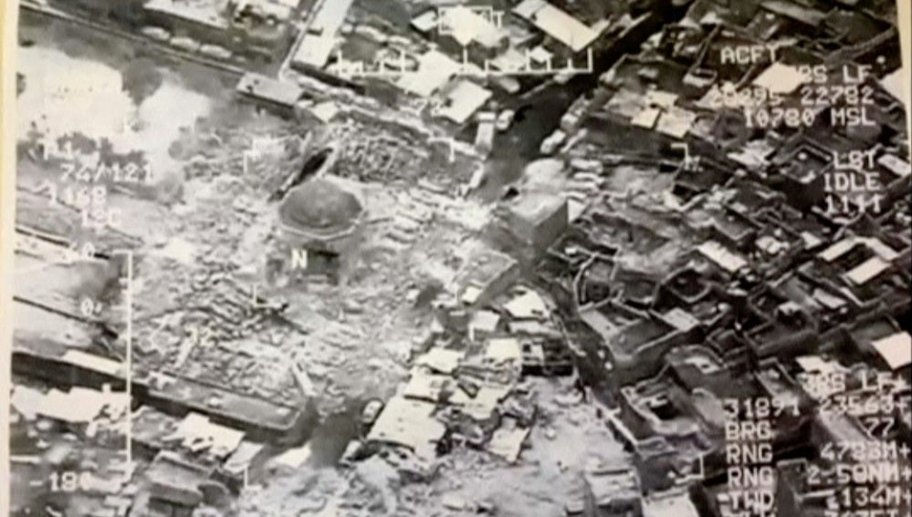 El Pentágono mostró imágenes de la emblemática mezquita de Al Nuri en Mosul destruida por Daesh y condenó haber dinamitado uno de los símbolos de la ciudad, con 800 años de antigüedad. Fotos distribuidas por el Pentágono muestran en blanco y negro imágenes aéreas de la destrucción que ha sufrido la mezquita, donde el 4 de julio de 2014 el líder de Daesh, Abu Bakr al Bagdadi, hizo una de sus raras apariciones ante las cámaras para proclamar su "califato".