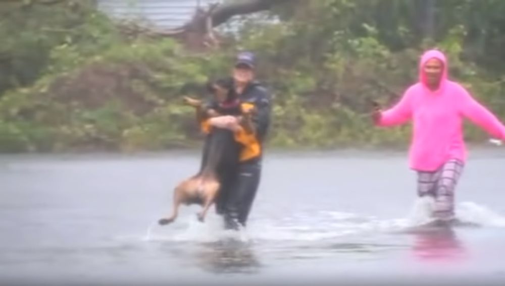 Una periodista de la ABC11 interrumpió un reportaje que estaba haciendo sobre el huracán Florence en Carolina del Norte para ayudar a rescatar a un perro que estaba atrapado por las inundaciones.
