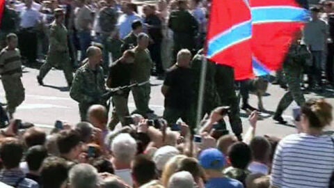Los prorrusos han hecho desfilar a un total de 40 prisioneros de guerra ucranianos por la ciudad de Donestk en el día del 23 aniversario de la independencia de Ucrania. Durante un cuarto de hora, los prisioneros han soportado insultos y el lanzamiento de objetos.