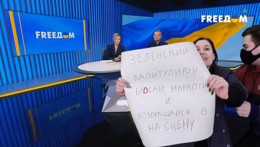 El vídeo protagonizado por una supuesta periodista ucraniana que protesta en contra de Zelensky interrumpiendo el informativo en la TV se está viralizando en redes sociales pero se trata de un montaje. Lo ha confirmado ella misma a través de Tik Tok, donde ya ha eliminado su contenido.