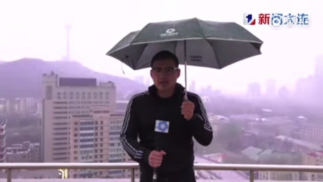 El reportero Lu Xiaodong grababa el lunes un informe a cámara, con un micrófono en una mano y un paraguas abierto en la otra, cuando el rayo le hizo gritar de dolor, como puede verse en el vídeo que tomaron. Lu, que aparentemente no sufrió heridas o quemaduras en el incidente, contó más tarde a Dalian TV que pudo ver chispas alrededor de su mano y en el paraguas que portaba el camarógrafo, quien también resultó ileso.