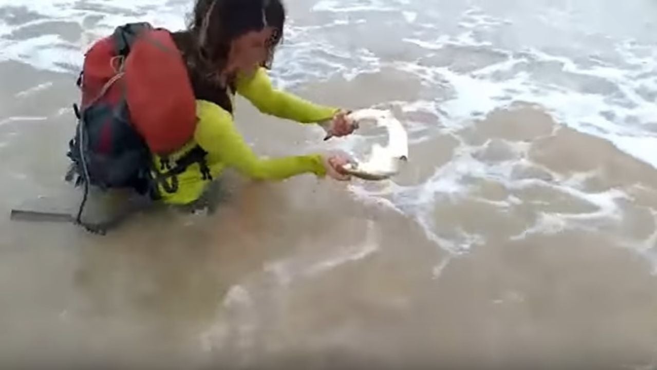 Una mujer ha sido mordida por un tiburón después de intentar hacerse un selfi con el animal en Praia do Sueste, Brasil. La turista, de 35 años, recibió cuatro puntos en un dedo y tendrá que pagar una multa por un delito medioambiental.