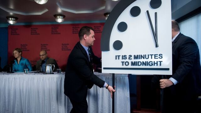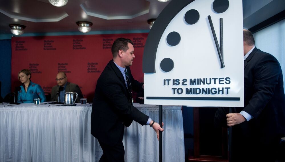 El conocido como 'Reloj del Fin del Mundo' cambiará su hora el próximo martes. El Boletín de Científicos Atómicos -un grupo de científicos entre los que se encuentran varios premios Nobel- revelará la hora del también conocido como 'Reloj del Apocalipsis'. Este indica lo cerca que está la humanidad de llegar a un apocalipsis, al fin del mundo.