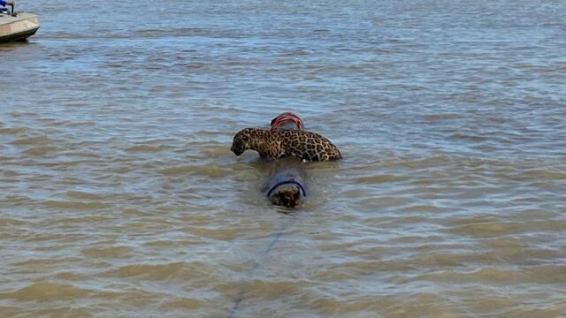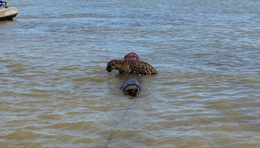 La Armada de Colombia ha rescatado esta semana a un jaguar que se encontraba nadando con un evidente estado de agotamiento en aguas del Caribe. Las autoridades rescataron al felino a unos dos kilómetros de la costa, pero se desconoce cómo pudo llegar hasta allí.