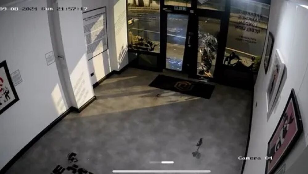 Las cámaras de seguridad de la galería captaron el momento en el que rompen el cristal de la puerta y descuelgan la obra de Bansky.