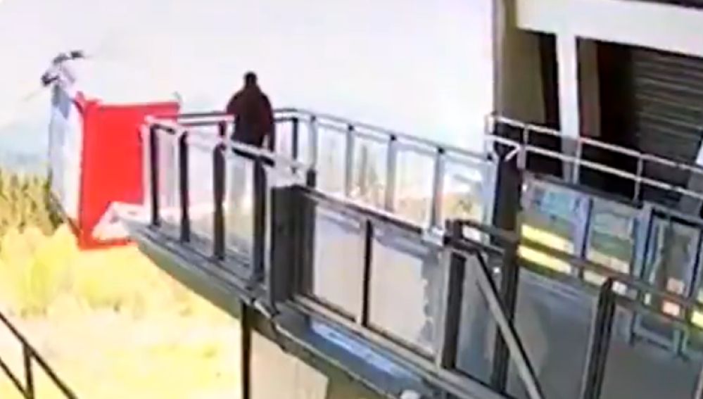 Esta grabación de la cámara de seguridad muestra el momento de la caída y podemos ver cómo la cabina estaba a punto de llegar a su destino.