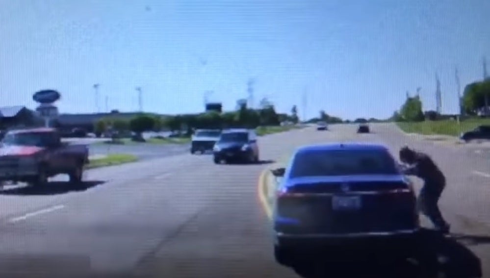Cuando el vehículo comenzó a perder velocidad, Tompkins no lo dudó y dejó su coche en mitad de la carretera y saltó por la ventanilla del copiloto del vehículo afectado.