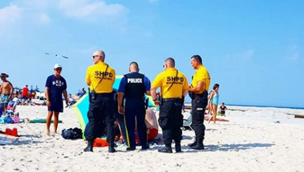 Margaret Reynolds, una mujer británica de 67 años, está herida grave después de que una sombrilla que salió volando le atravesase el tobillo derecho en Seaside Heights, una playa de Nueva Jersey, EEUU.