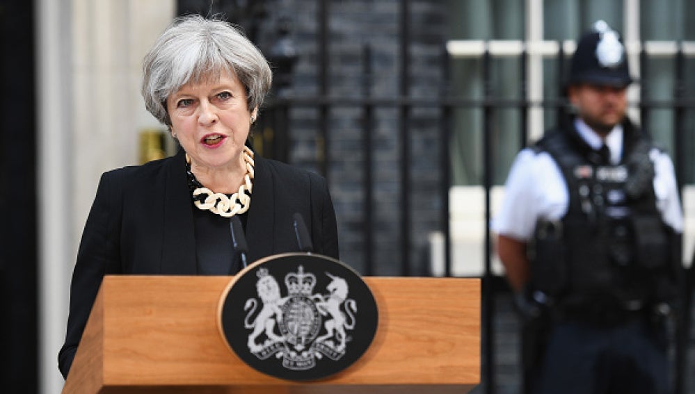 May ha presidido una reunión del comité de emergencias Cobra, en el que participa la cúpula de la seguridad y de la inteligencia británicas, tras los ataques terroristas que dejaron anoche siete muertos y tres terroristas abatidos, y cerca de medio centenar de heridos en Londres.