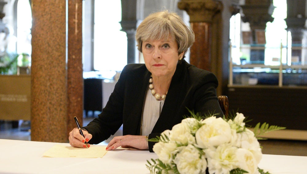 La primera ministra británica, Theresa May, elogió este martes la "valentía inspiradora" de los servicios de emergencia y el "espíritu inquebrantable" de los ciudadanos de Manchester, al firmar el libro de condolencias por las víctimas del atentado de la noche del lunes, en el que murieron 22 personas.