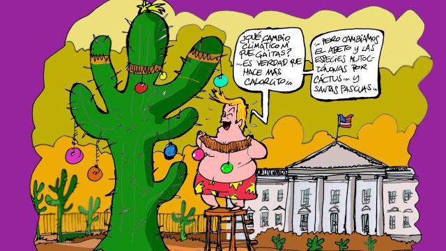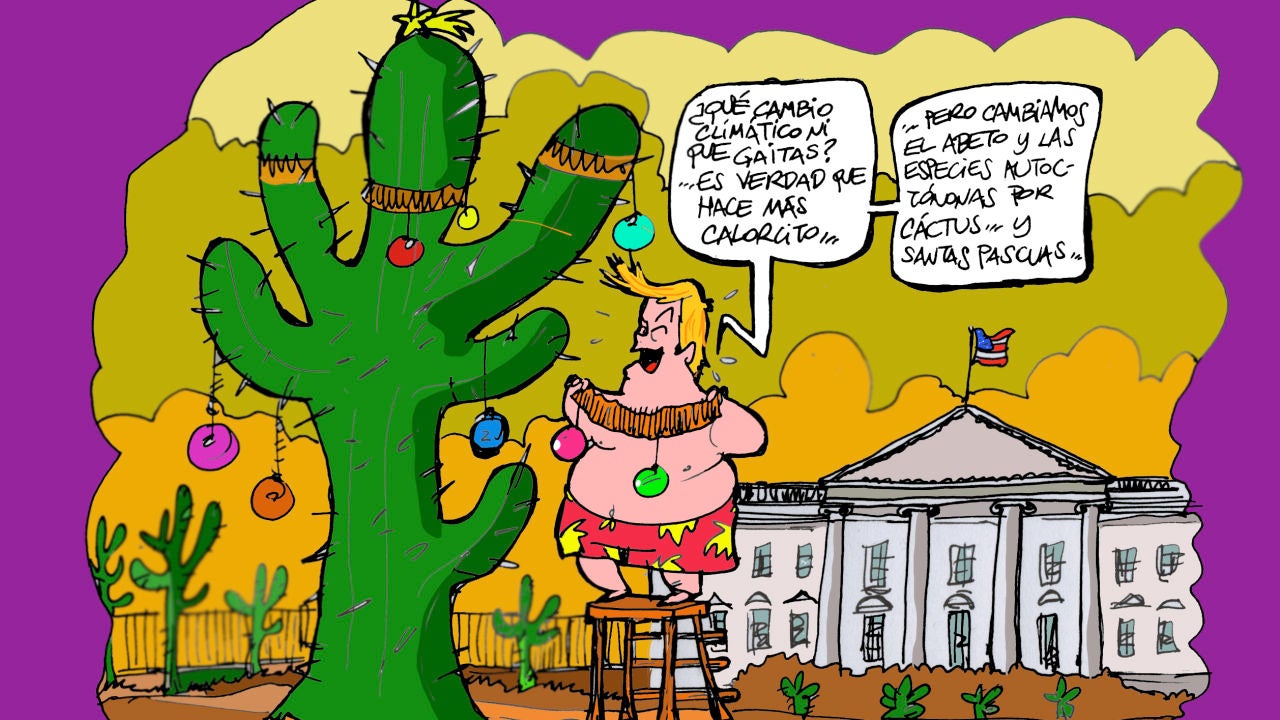 Pero para Trump siempre no hay mal que por bien no venga, y estas navidades ha decidido cambiar el abeto por un cactus, para que se vaya adapte sin problemas al calentamiento global.