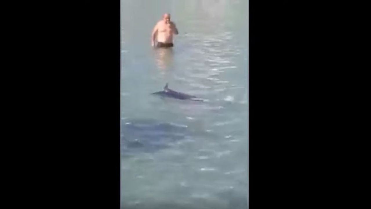 En un vídeo que se ha hecho viral se puede ver como un grupo de personas lanzan piedras al animal que intenta huir del lugar. En las imágenes también se ve como varias personas se lanzan al agua para intentar atrapar al animal.